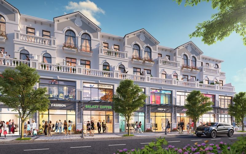 Là sản phẩm chiến lược tại dự án với tổng số 726 căn, thiết kế cao 4 tầng, diện tích từ 96 – 136 m2 với mặt tiền rộng tới 8m, được bố trí thành các dãy phố tập nập với mặt tiếp giáp với trục đường chính…